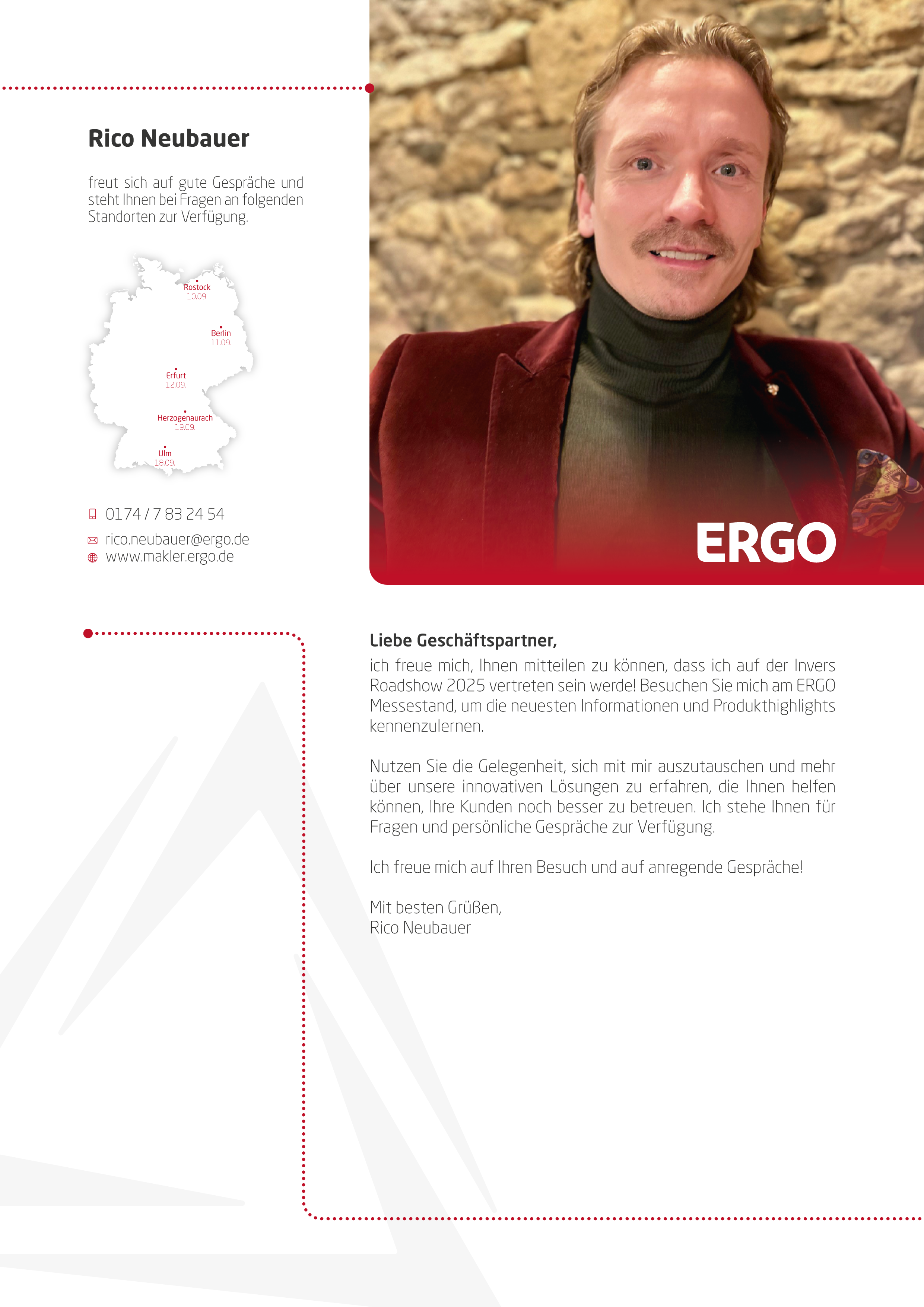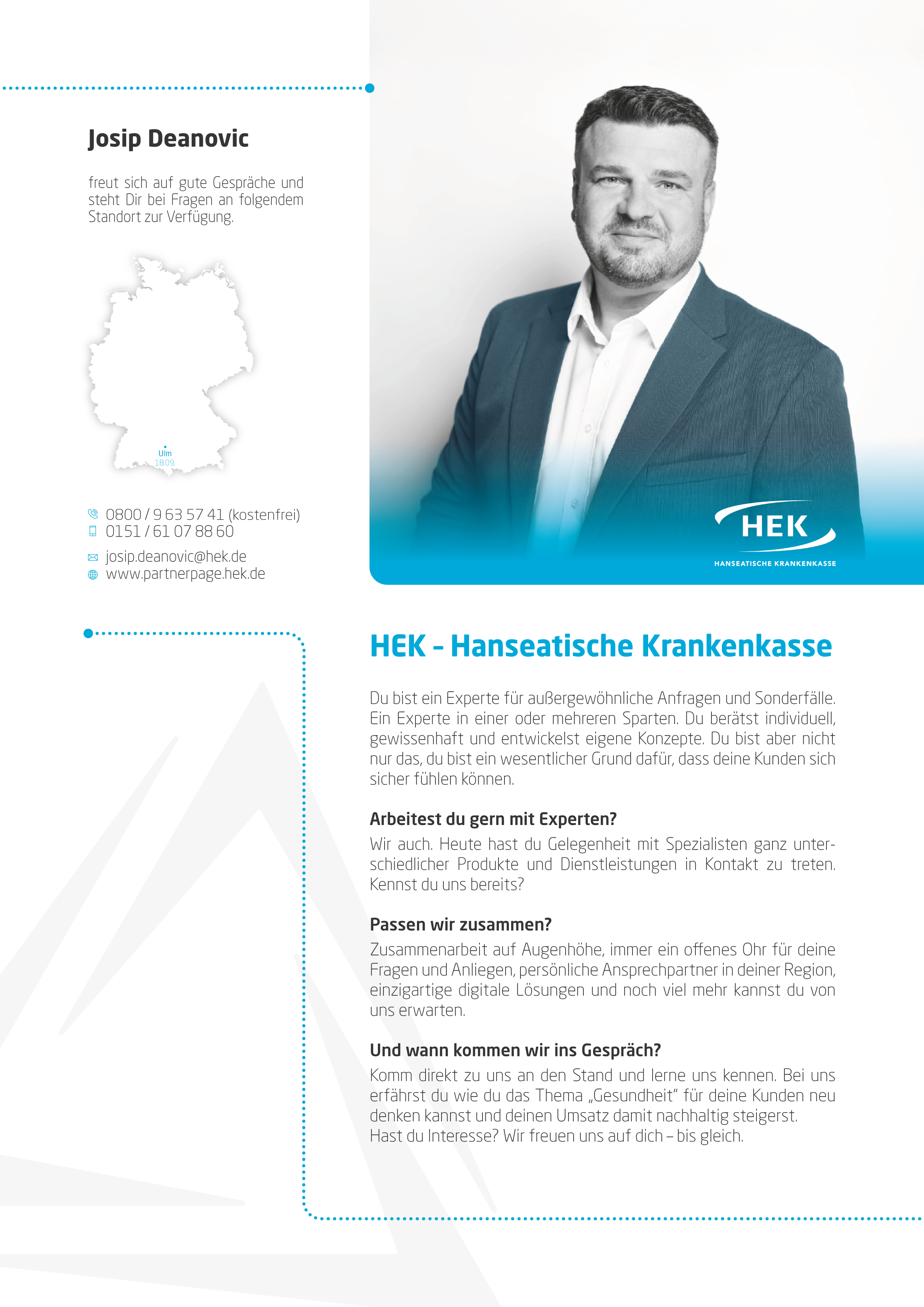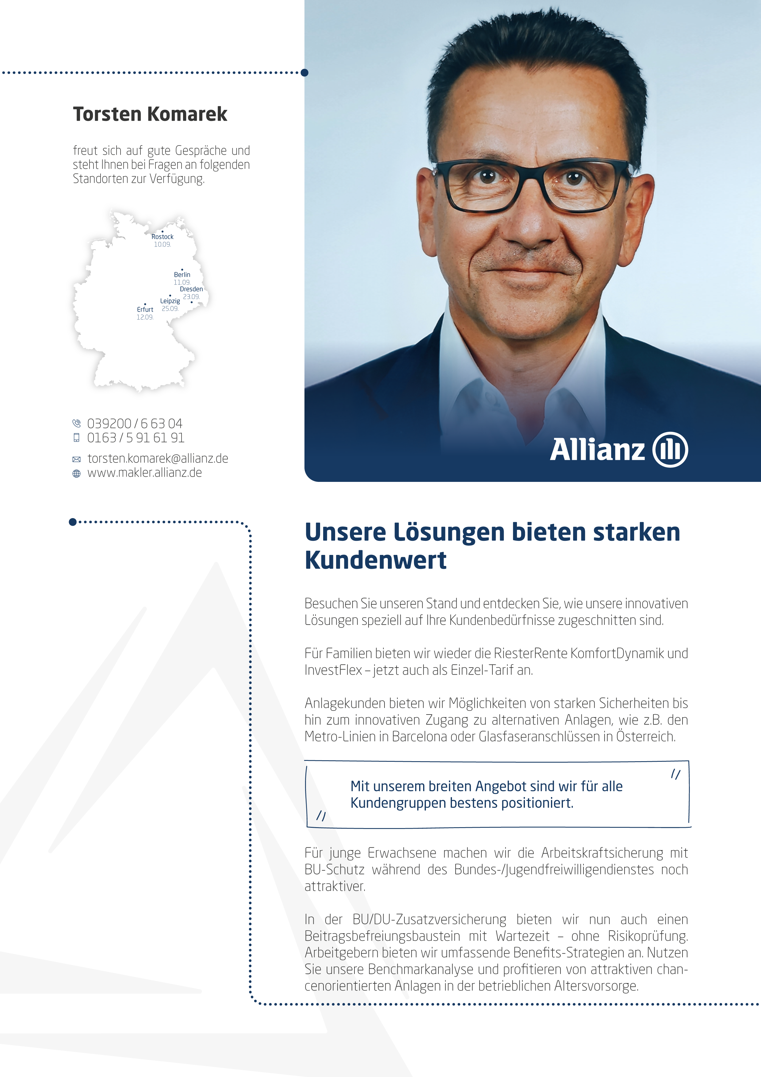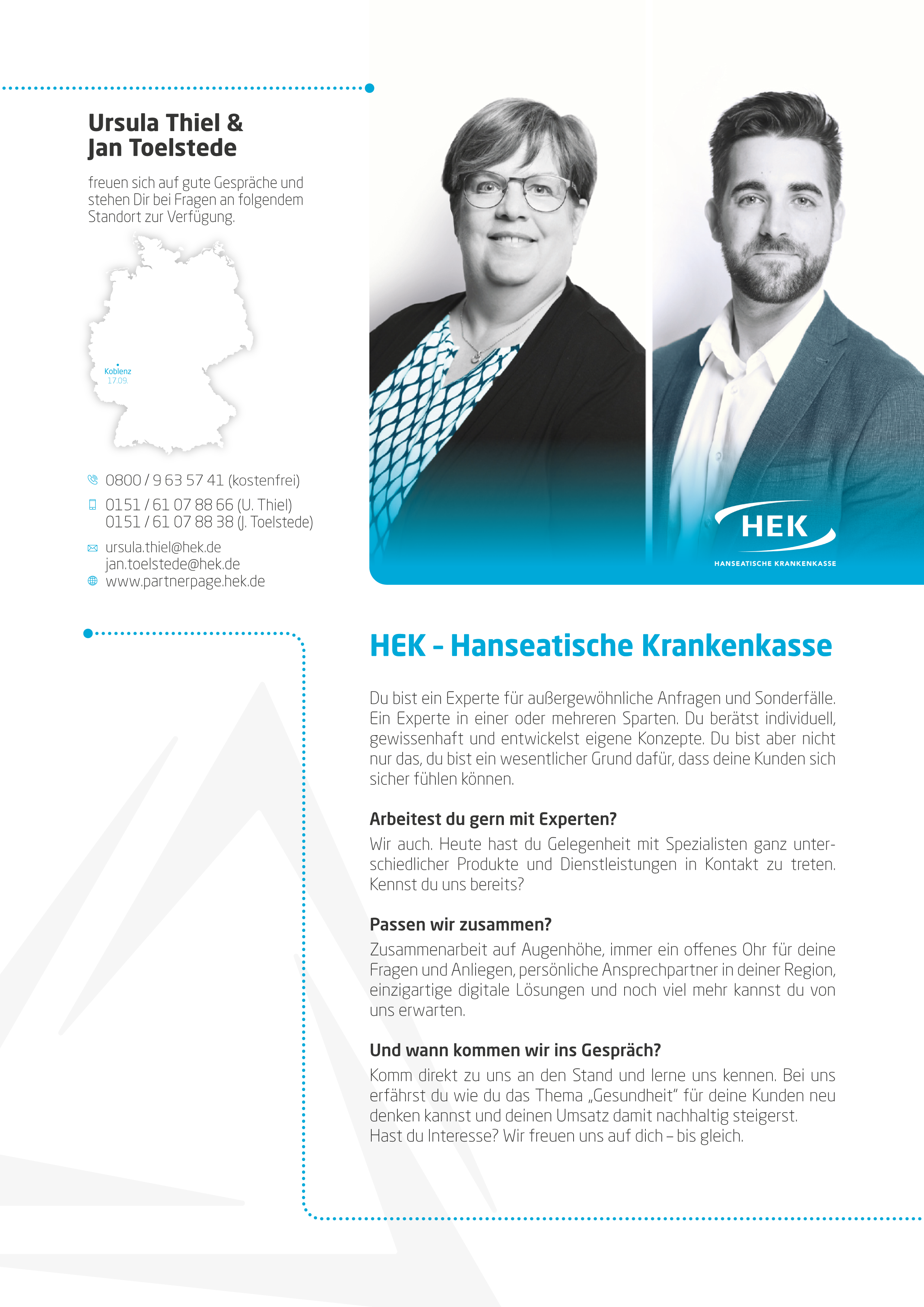 ... die Wichtigen zu einem Dialog auf Augenhöhe. Persönlich, nah, relevant. Seien Sie Teil unserer Veranstaltungsreihe und sichern Sie sich einen Platz an einem der 9 Standorte! Tauschen wir uns gemeinsam über Lösungen aus, die wirklich zählen - für Sie, für Ihre Kunden, für unsere Zukunft.