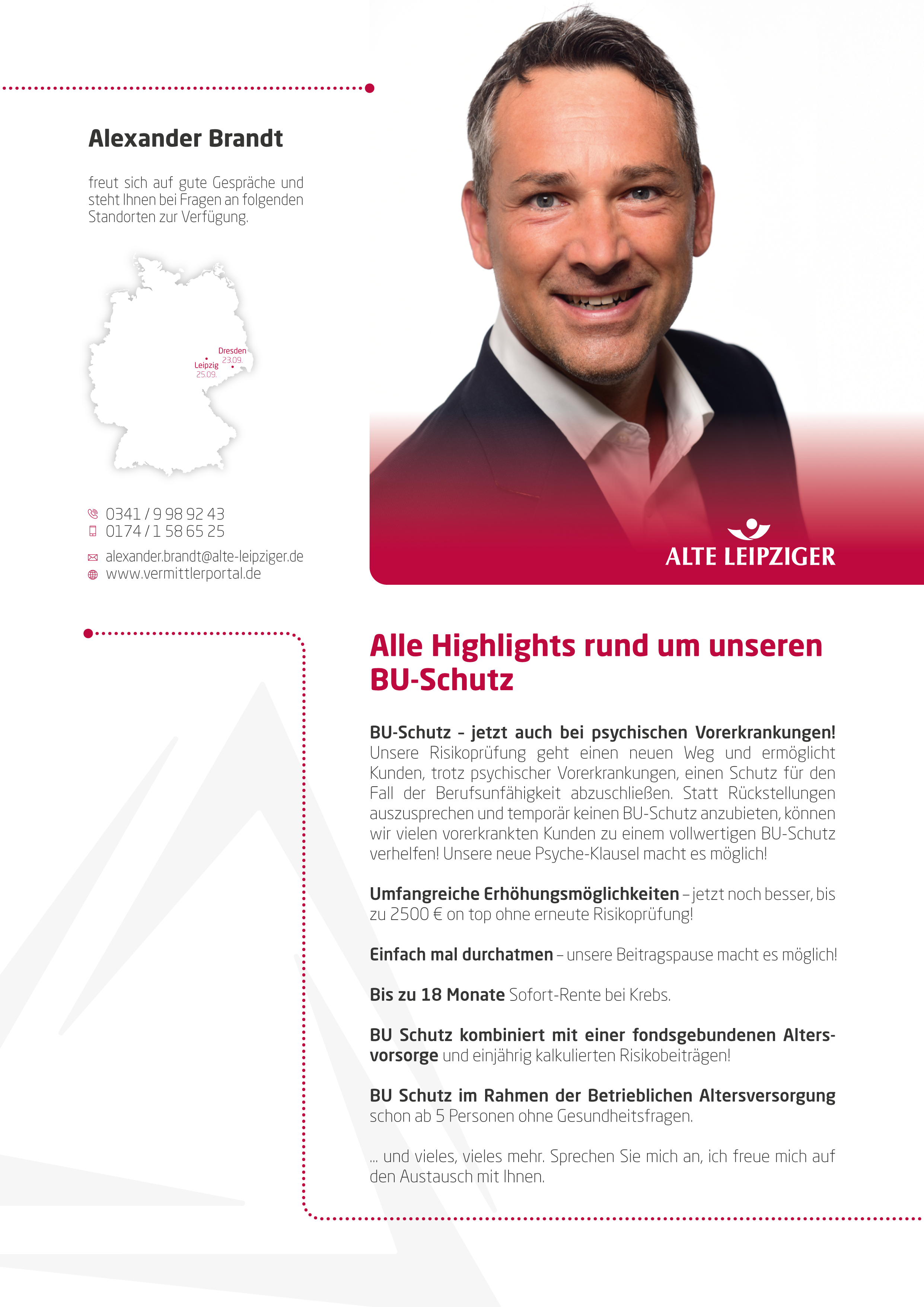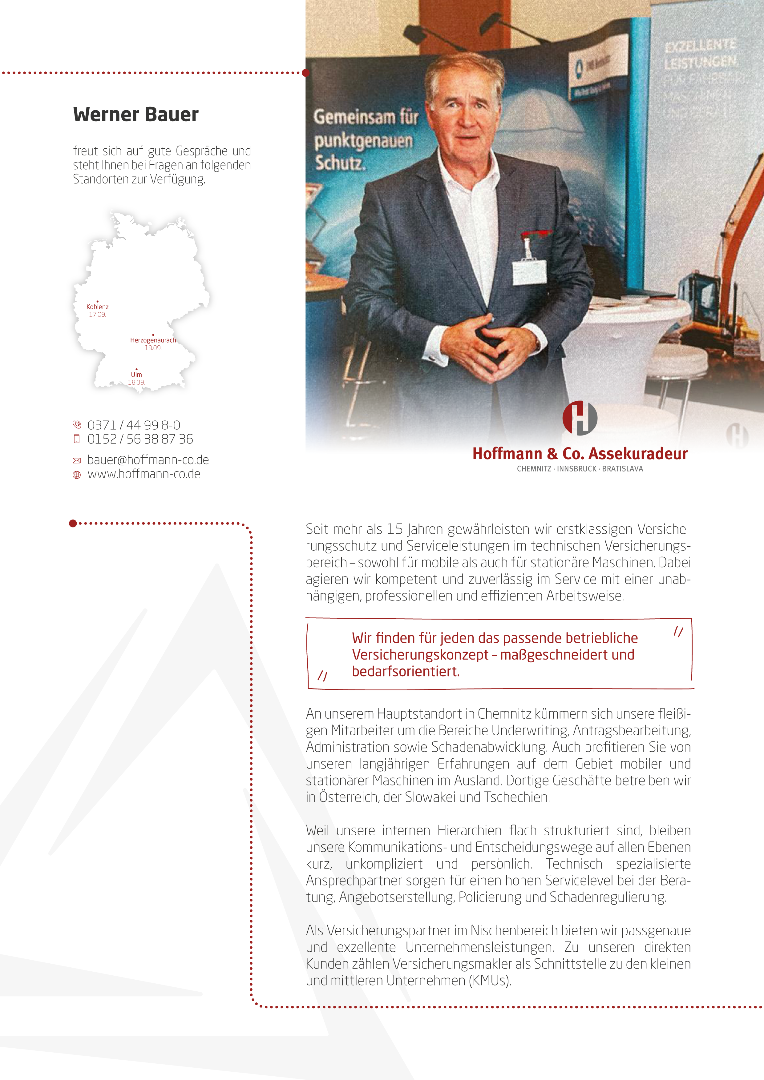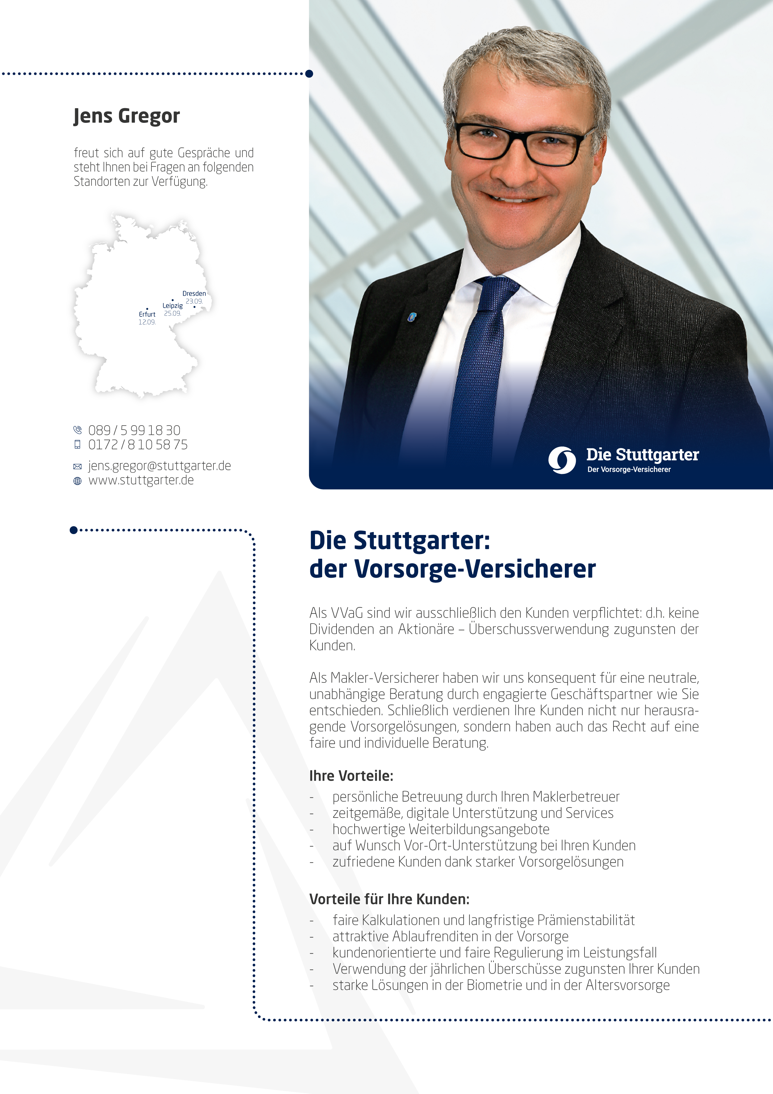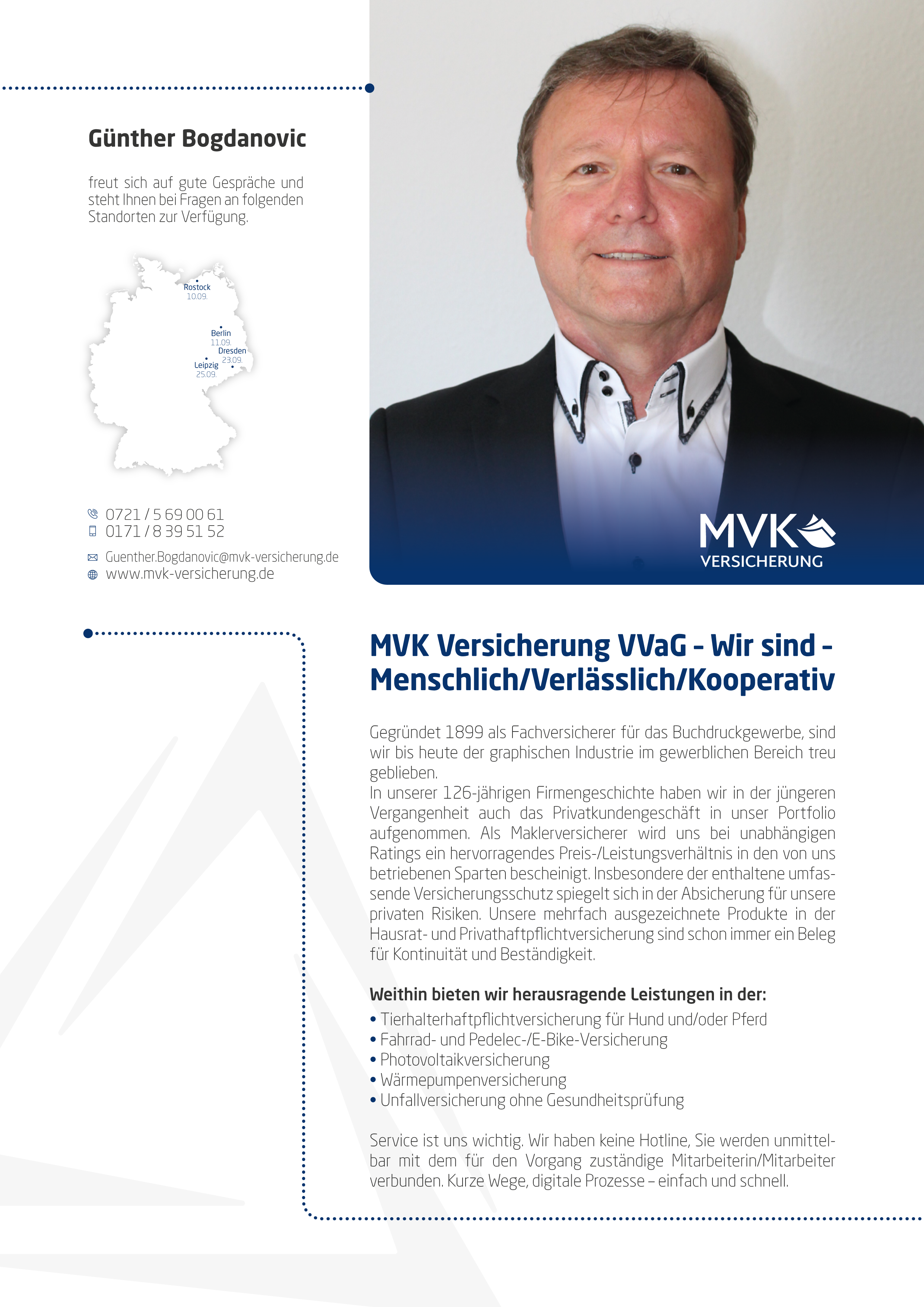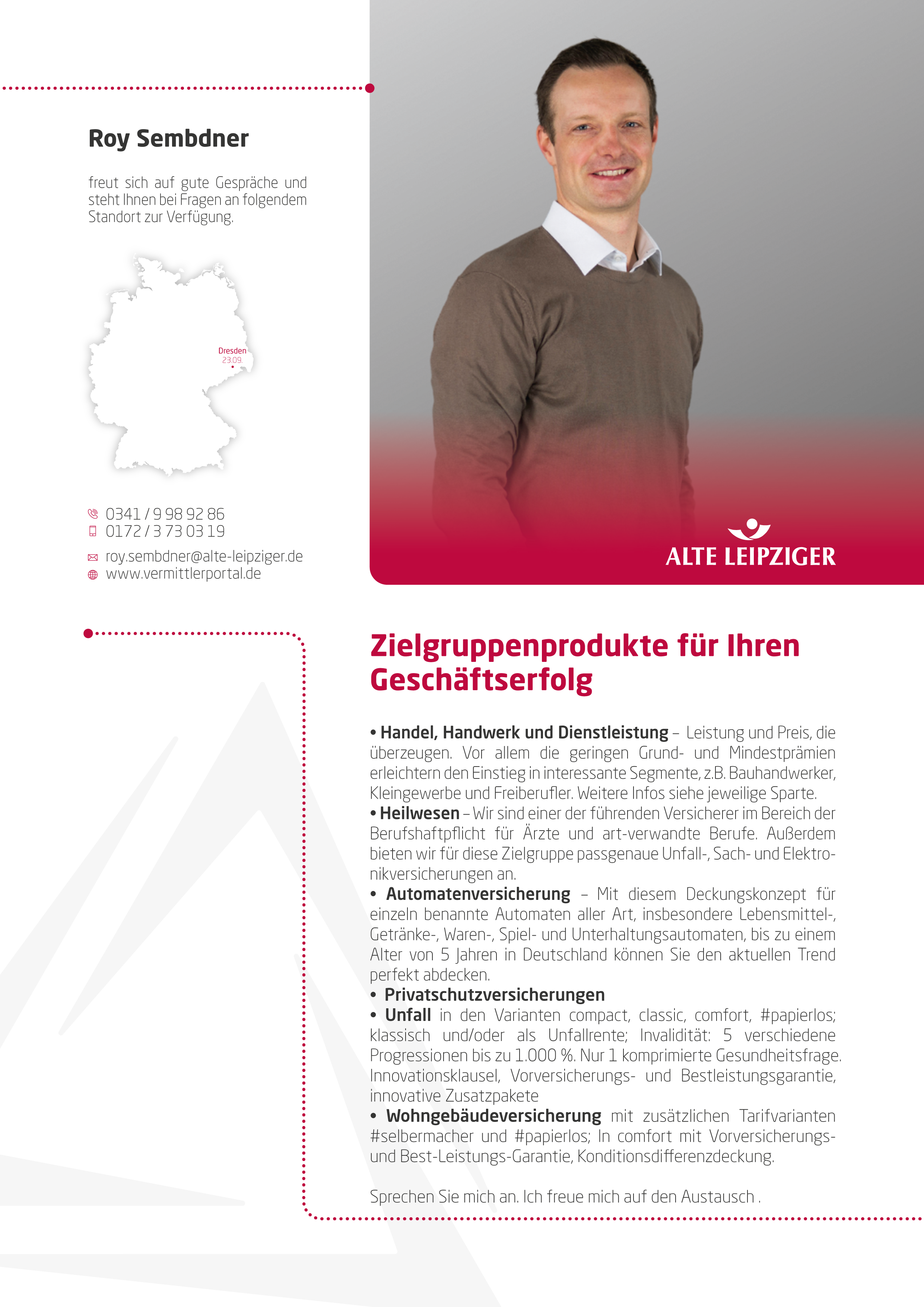 … die Richtigen zu den richtigen Themen! Mit unserem Fokus aufs Wesentliche sind wir uns unserer zentralen Aufgabe als Maklerpool bewusst. Als langjährig vertrauensvoller Partner ist unser Beitrag, Angebot und Nachfrage über die gesamte Wertschöpfungskette zusammenzubringen, entscheidend. Wenn es darum geht, gemeinsam in einem komplexen und hart umkämpften Markt die richtigen Impulse zu setzen, können engagierte Vermittler und innovative Produktgeber auf uns zählen.